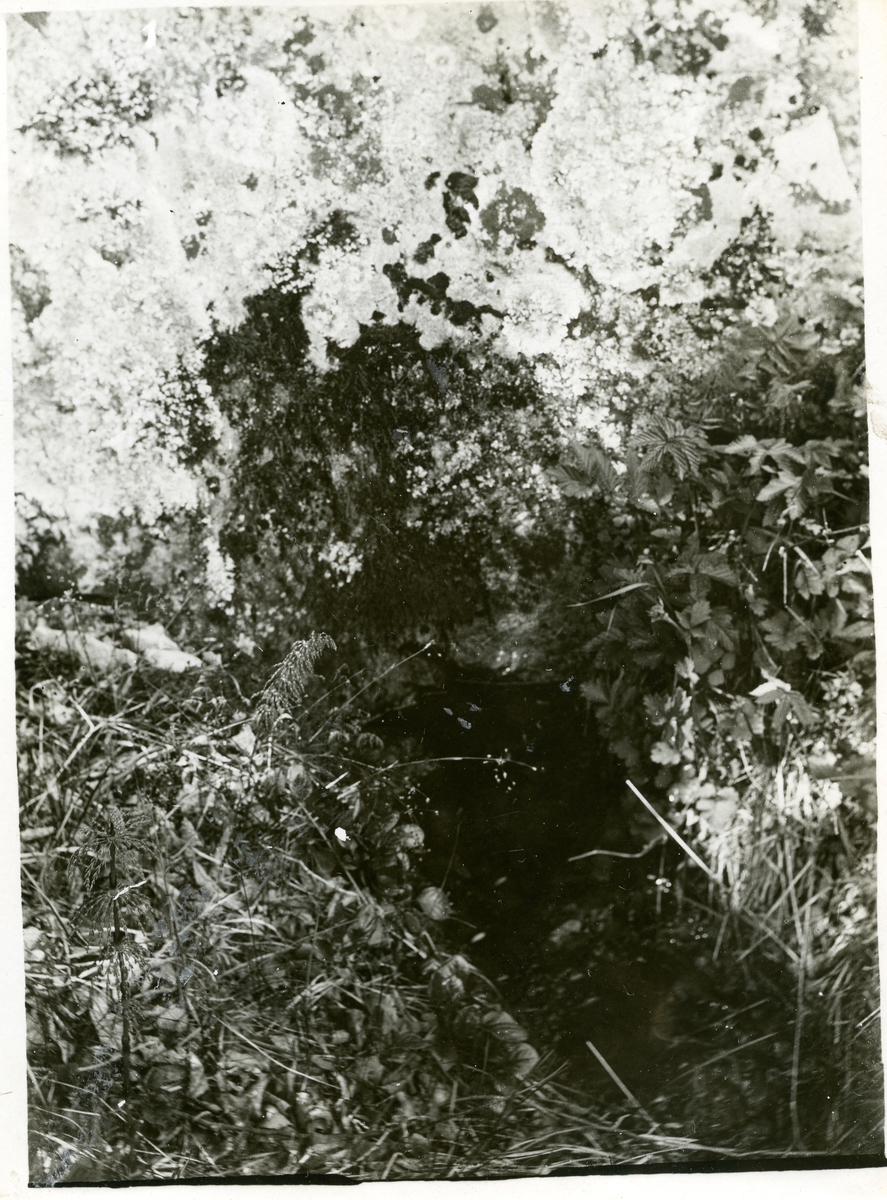 Ser ut att vara ett utgrävt hål in under stort stenblock.