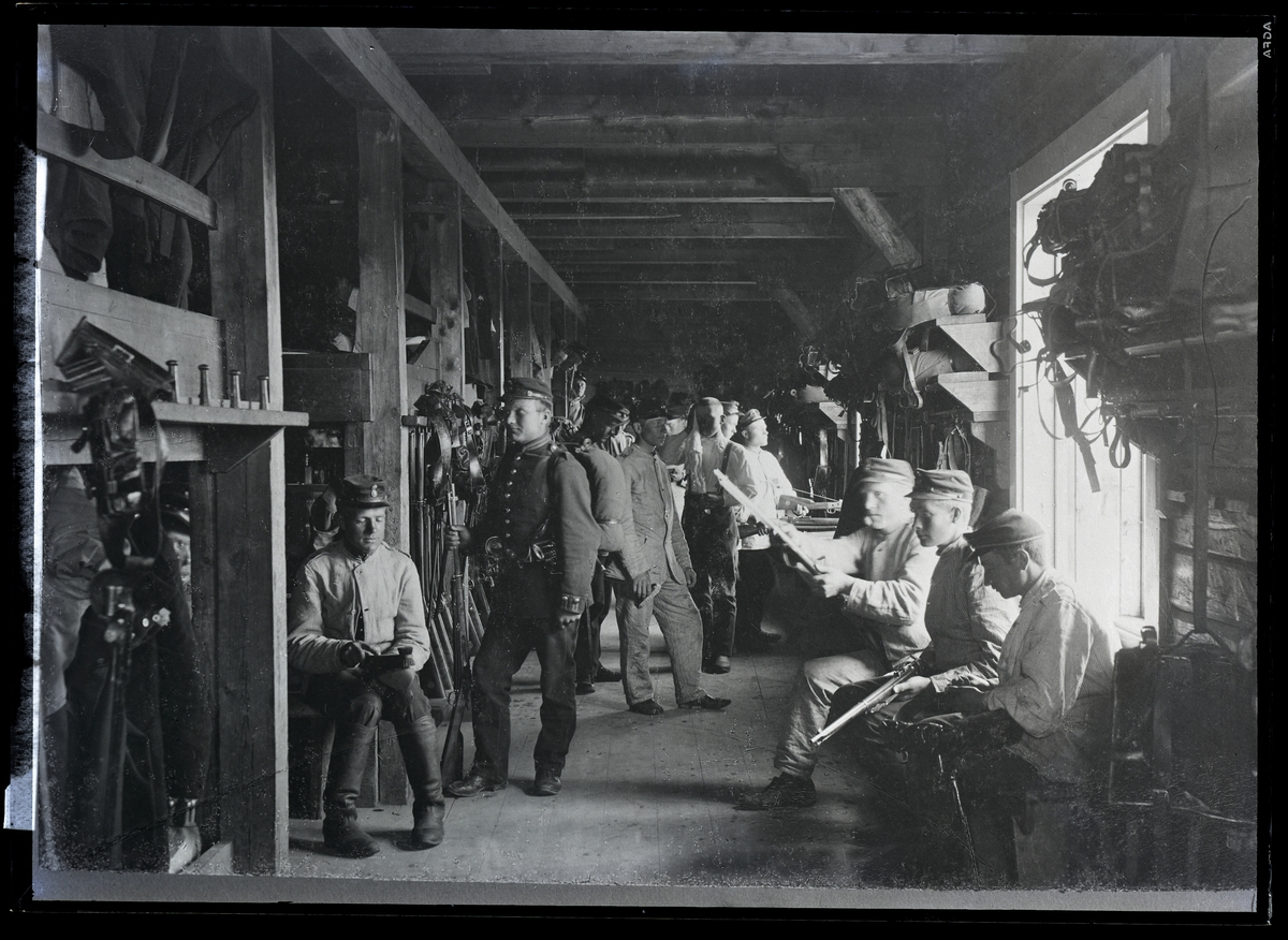 Interiör av mansbarack vid Salbohed, Västmanlands regemente.