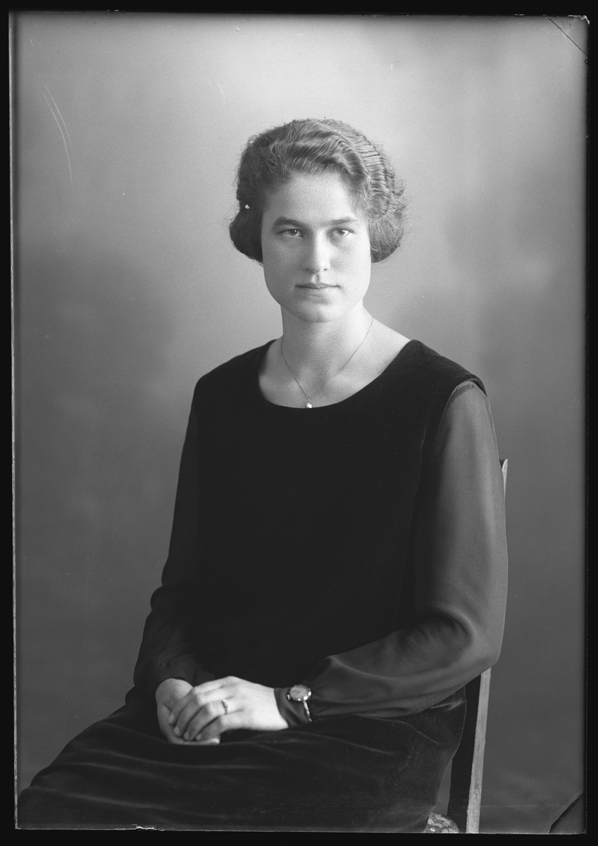 Porträtt. Astrid Pettersson, Gustafsberg, Åsby, Hallstahammar.