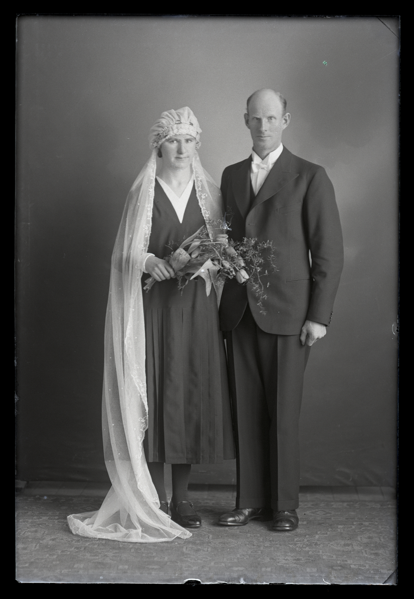 Bröllopsporträtt, brudpar. Johannes Karlsson, Årby, Kolbäck.