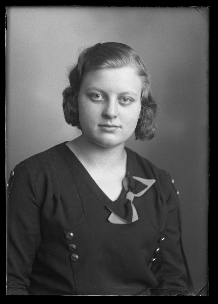 Kvinnoporträtt. Alvi Fernström, Box 341, Hallstahammar.