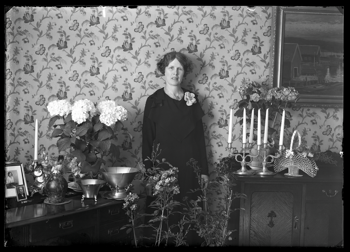 Kvinnoporträtt, 50-års foto. Fru Eva Roos, Box 801, Hallstahammar.