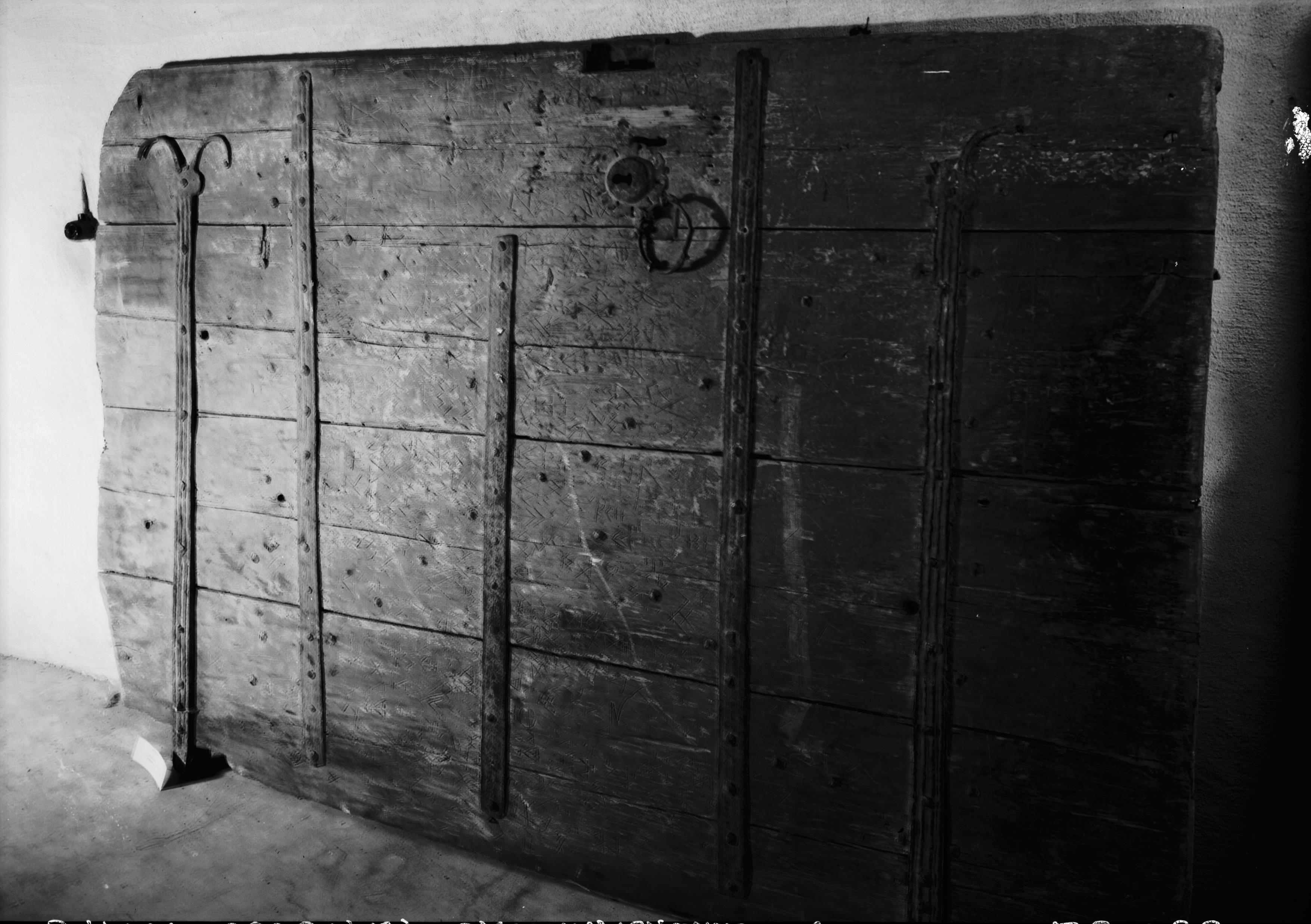 Kyrkans trädörr med järnbeslag.