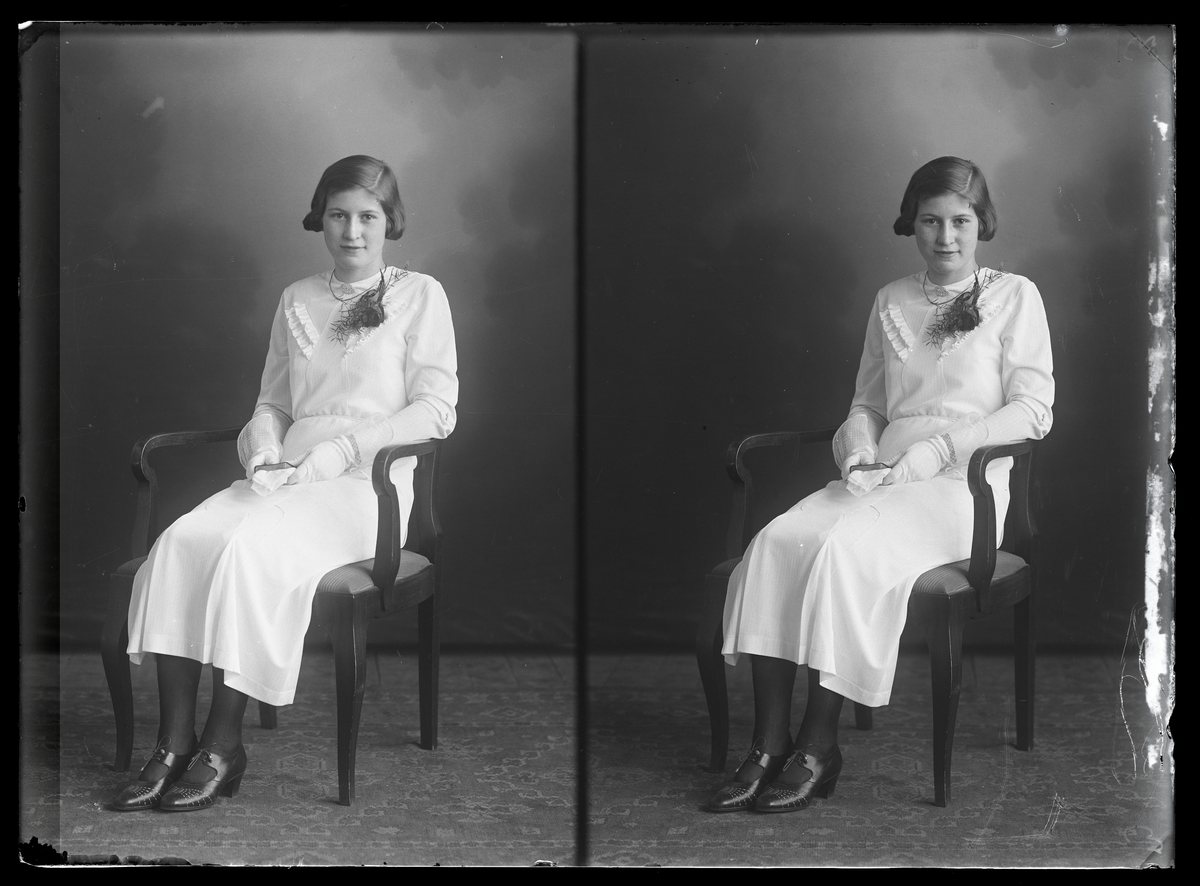 Porträtt, läsfoto. Aina Larsson, Prästgården, Munktorp.