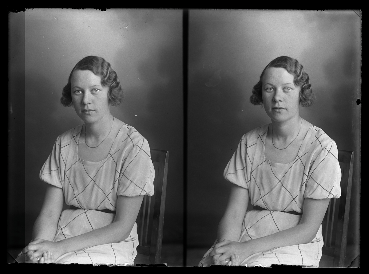 Porträtt, passfoto. Tora Eriksson, Mej. Kolbäck.