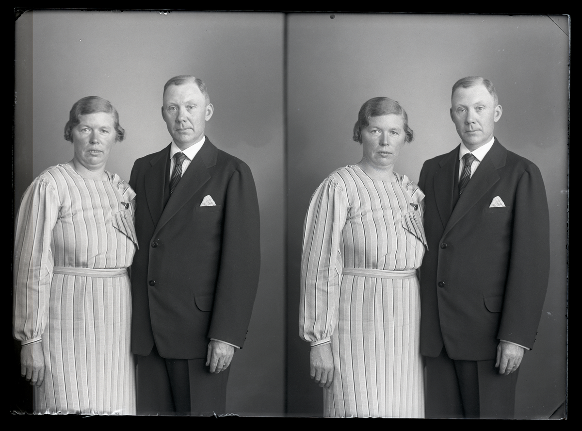 Grupporträtt, man och kvinna. Elis Söderkvist, Tomtebo 54, Hallstahammar.