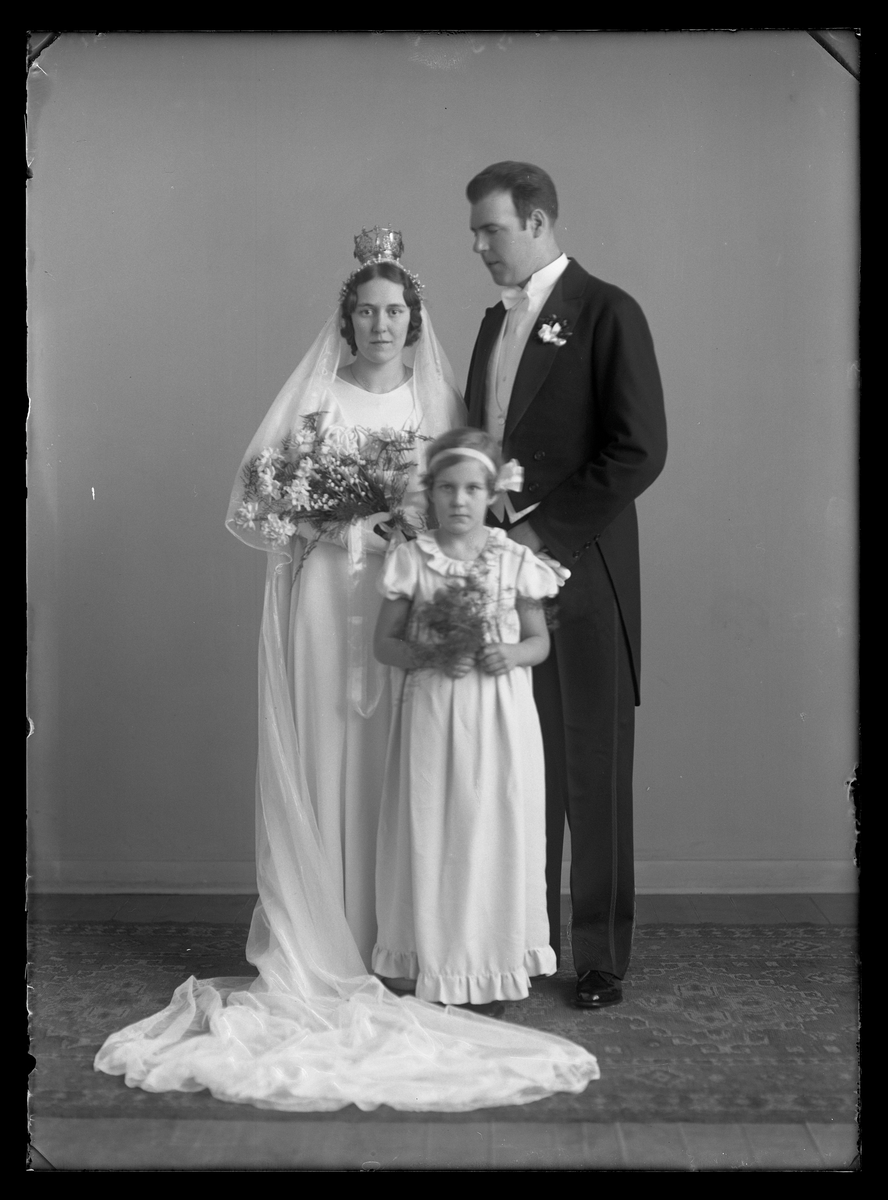 Grupporträtt, Brudpar, Martin Stavström, Box 345, Hallstahammar.
