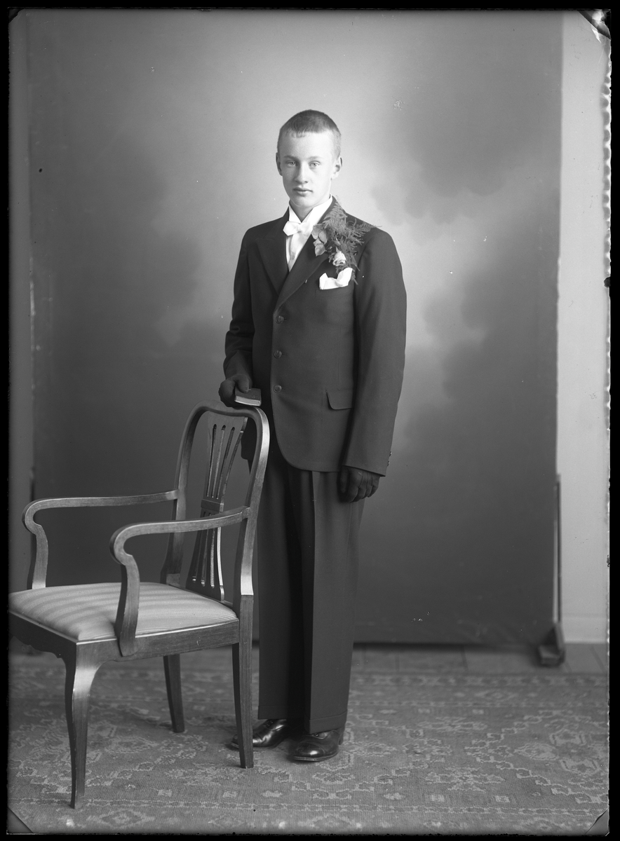 Titel: Porträtt, Karl-Erik Eriksson, Yllesta, Kolbäck. Ur Gustaf Åhmans samling.