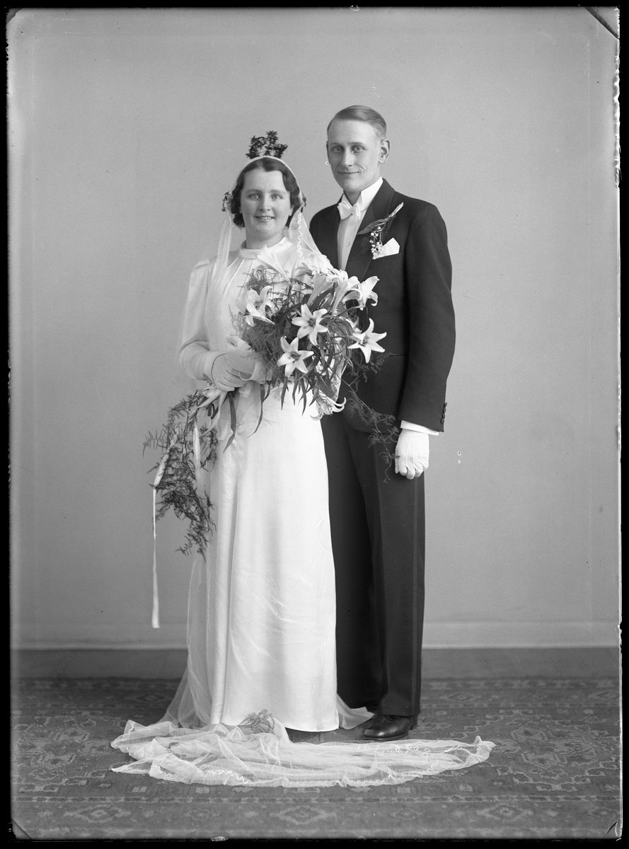 Titel: Brudpar, M. Nordkvist, Box 659, Köping. Ur Gustaf Åhmans samling.