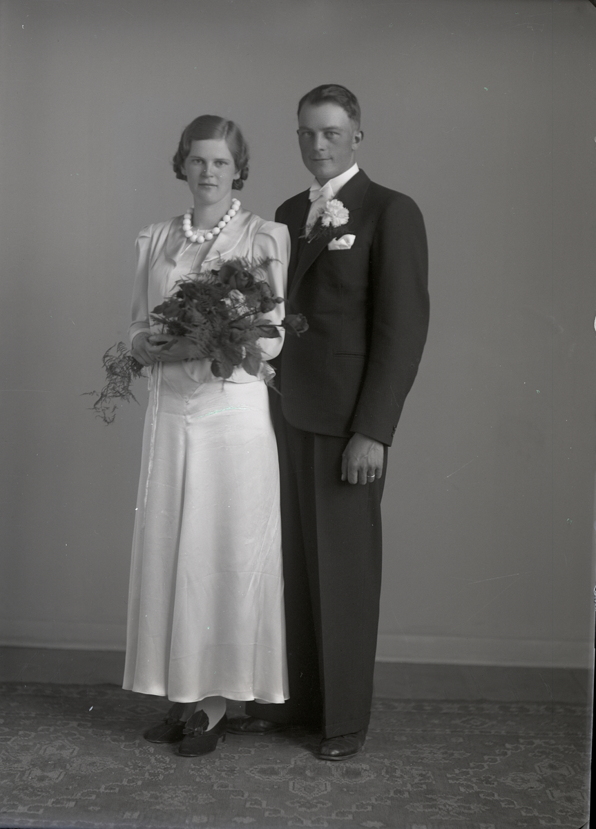 Porträtt; Brudpar. Ingvar Andersson, Box 2 Strömsholm.