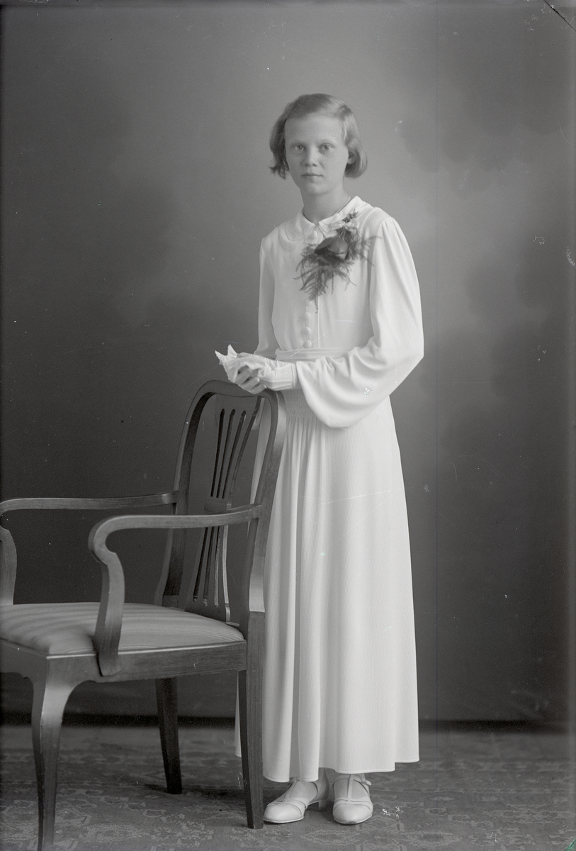 Porträtt. Läsfoto, Märta Borgelsson, Ansta, Kolbäck.
