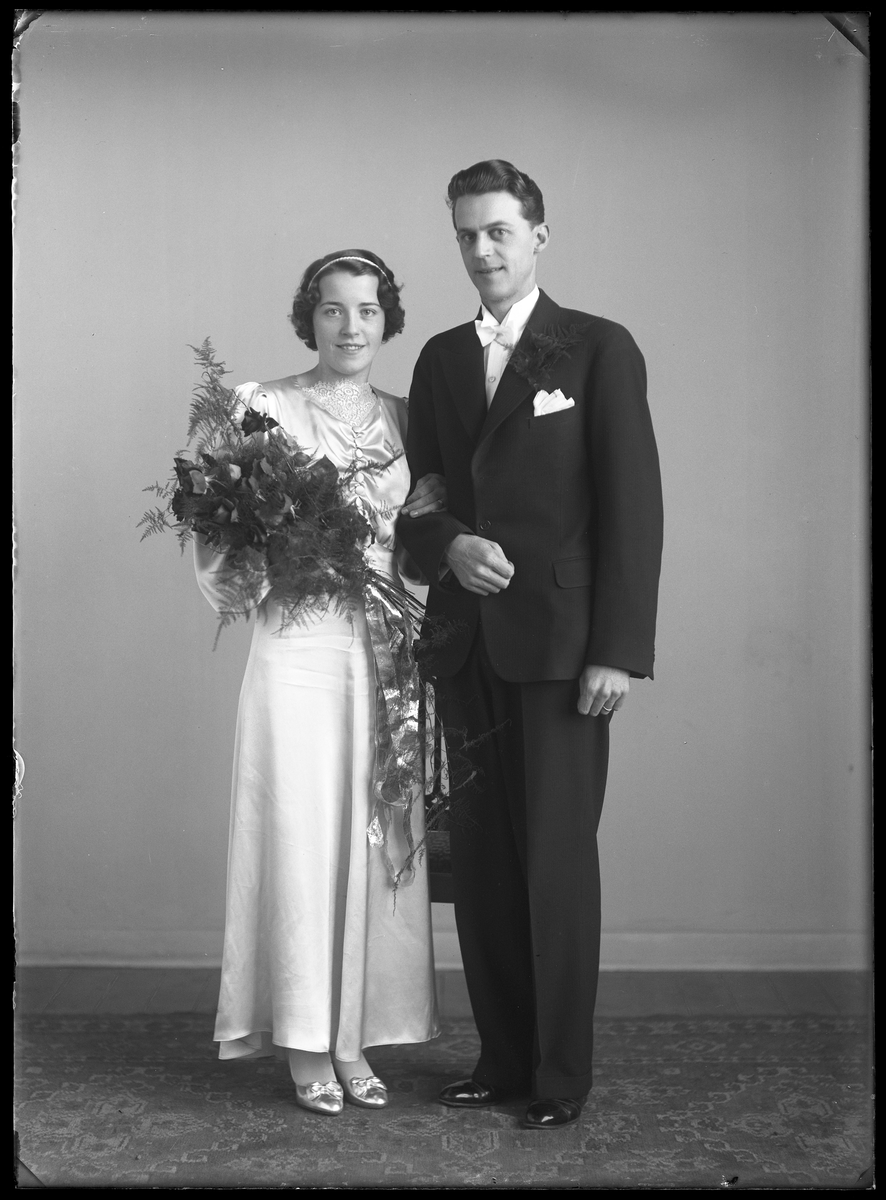 Grupporträtt. Brudpar, E. Vickström, aoh, Engström, Herrevad.