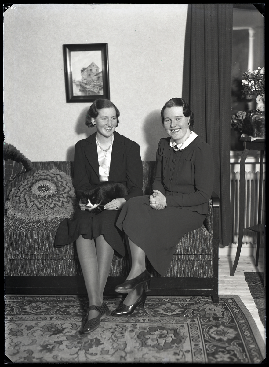 Grupporträtt. Två flickor, Fru Skogsvaktare Larsson, Kolbäck.