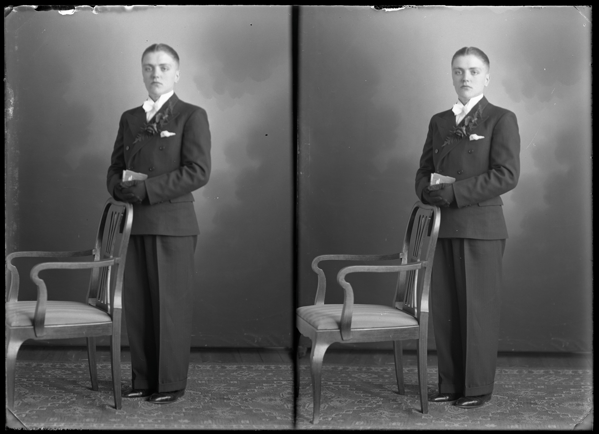 Porträtt, läsfoto. Ingvar Eriksson, Kolbäck.