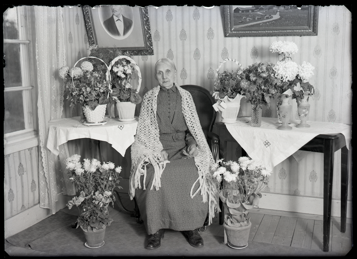 Kvinnoporträtt, 70-års foto. Fru Anna Andersson, Vänsta.