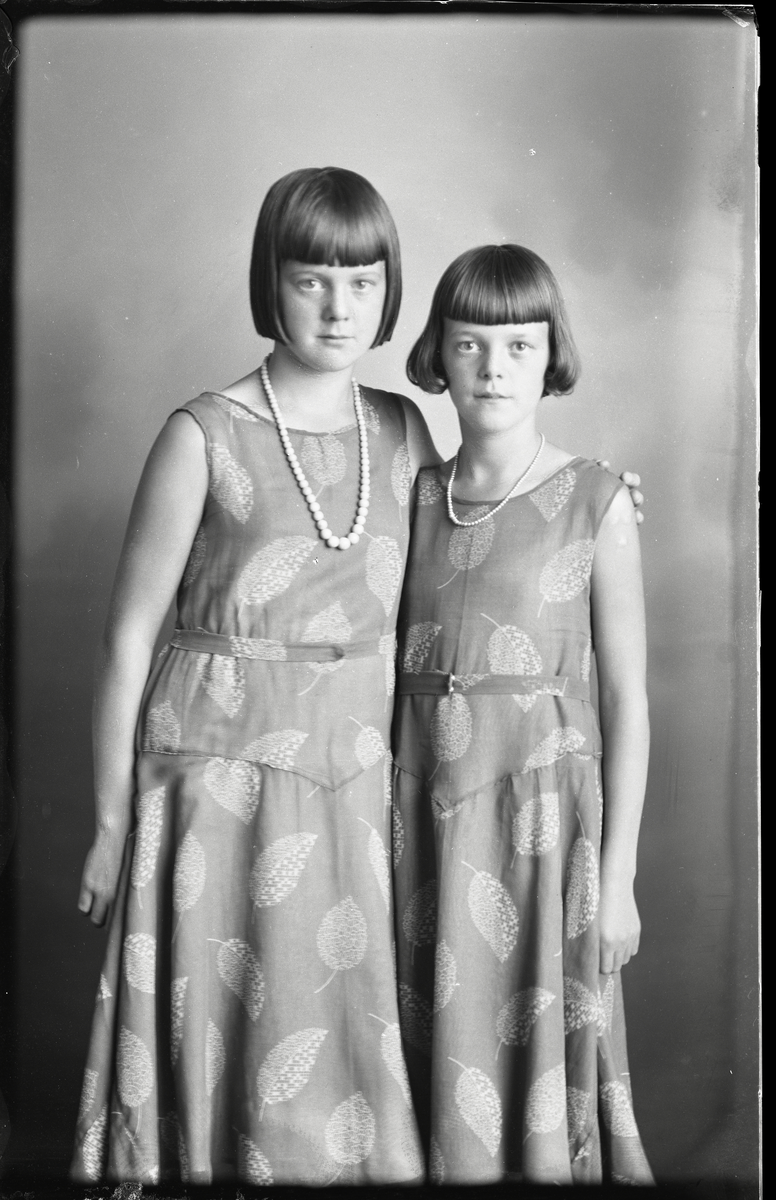 Grupporträtt, två flickor. Fru Handlare Edgren, Hallstahammar.