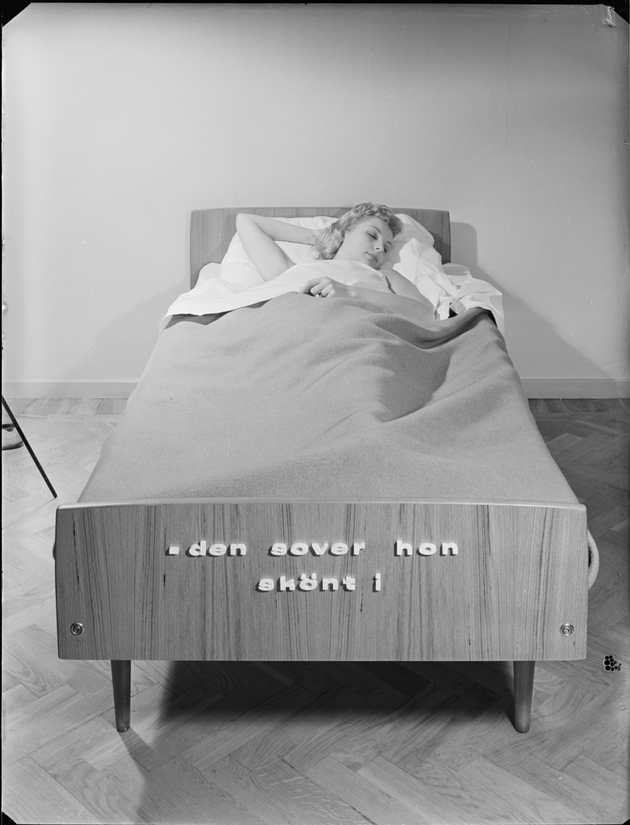 FLICKA I SÄNG FÖR ANNONS "DEN SOVER HON SKÖNT I"