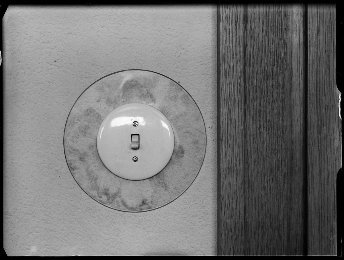 Titel: DETALJ PÅ VÄGGSTRÖMBRYTARE SAMT FERNISSAD LINOLEUM