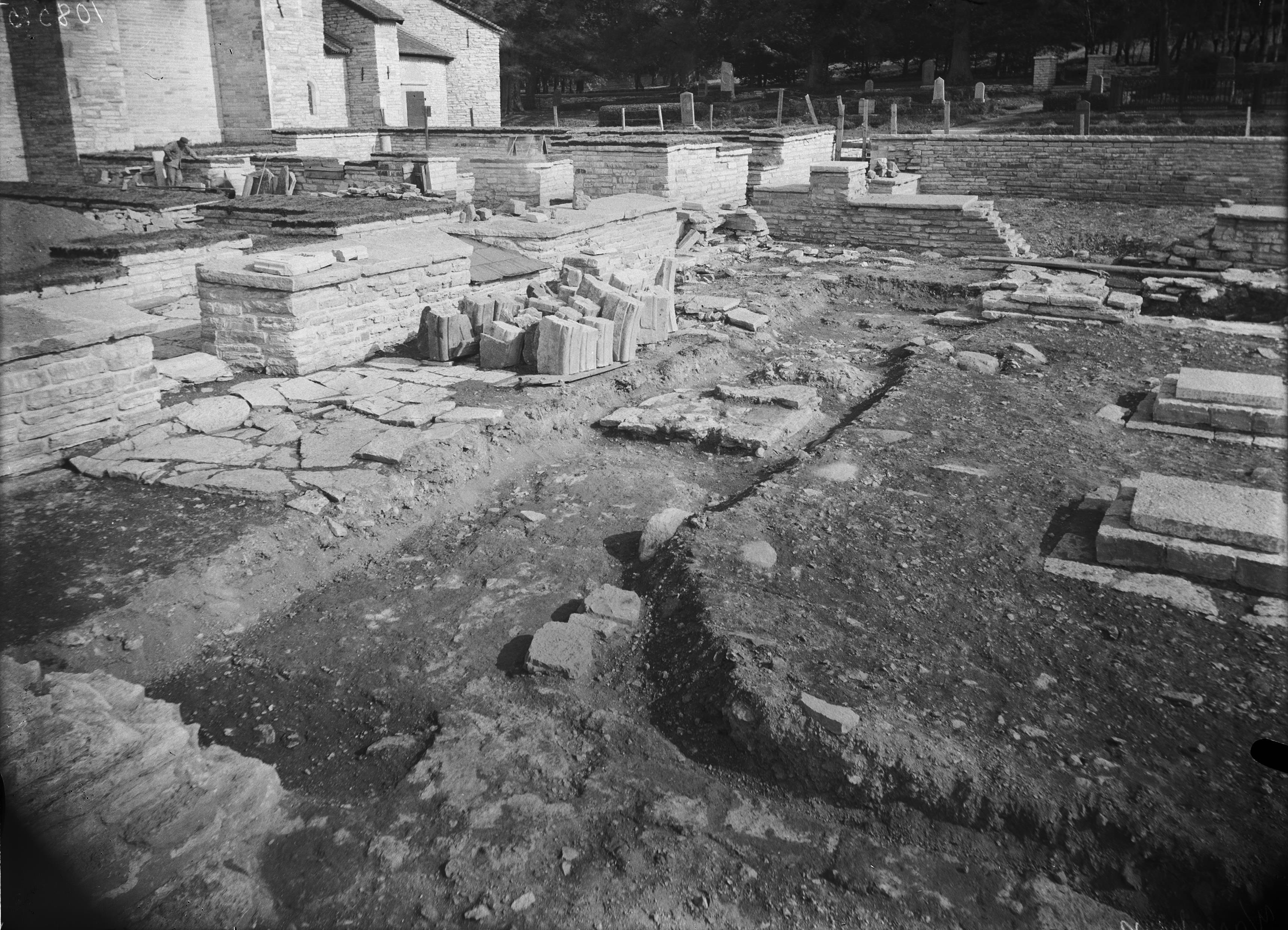 Golv i refektoriets förrum. Refektoriets norra mur och nordvästra hörn. från sydväst.
