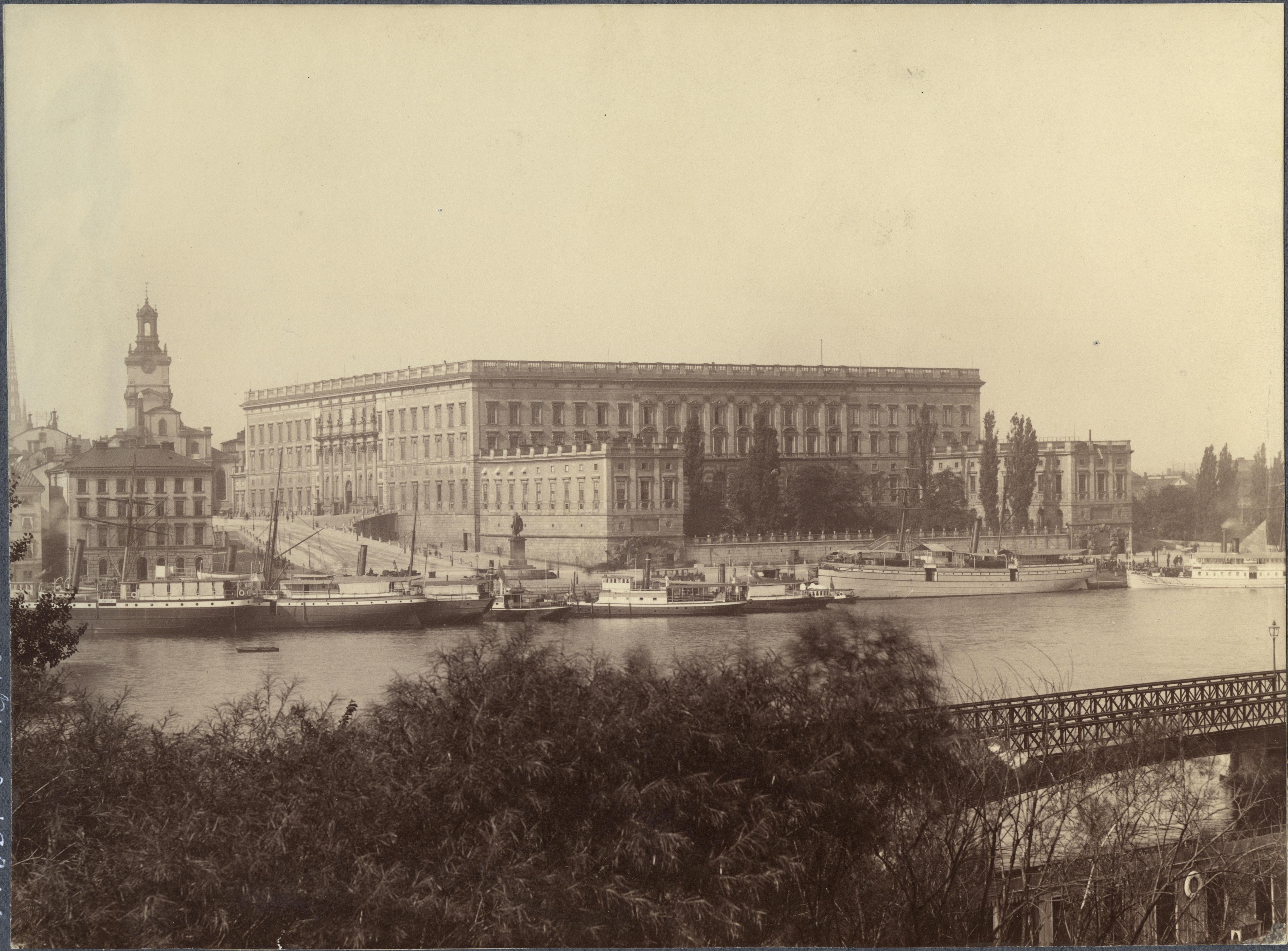 Vy över Gamla stan och Kungliga slottet från Skeppsholmen. Till vänster syns Storkyrkan (Sankt Nicolai kyrka).