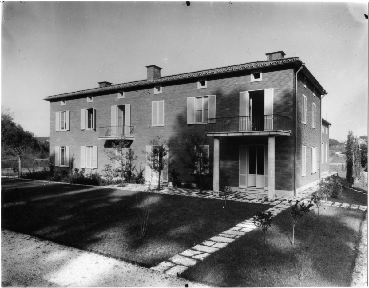 Titel: Svenska Institutet i Rom Exteriör med gräsmatta i förgrunden.