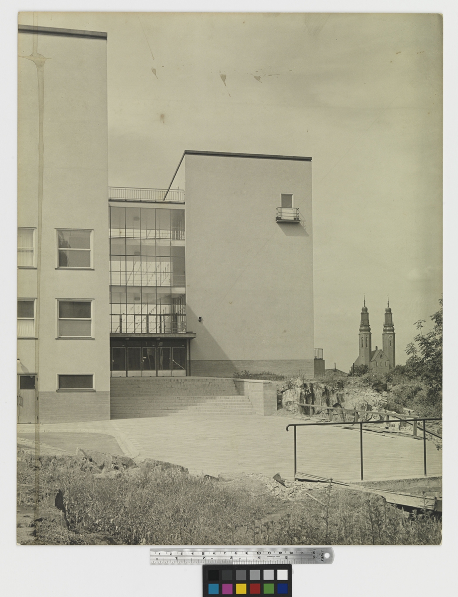 Titel: Södra kommunala mell.skolan Perspektiv exteriör