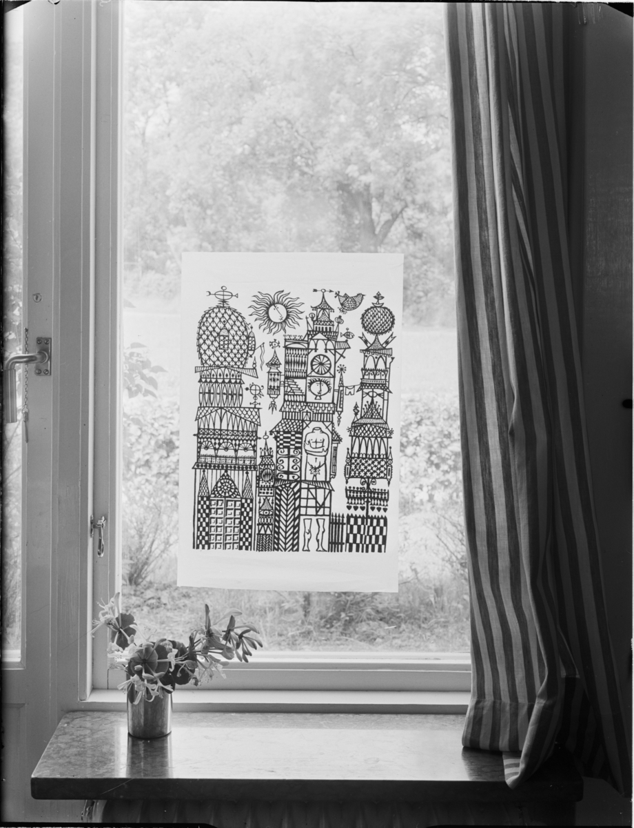 BLOMFÖNSTER SAMT PRYDNADSFÖREMÅL ARR. AV FRU HALD