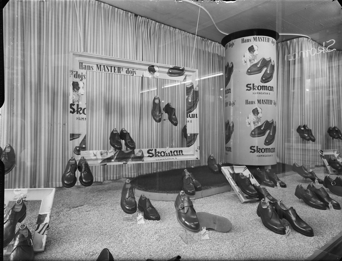 Skylltfönster med reklamslogan "Hans MASTERs 'dojs'"