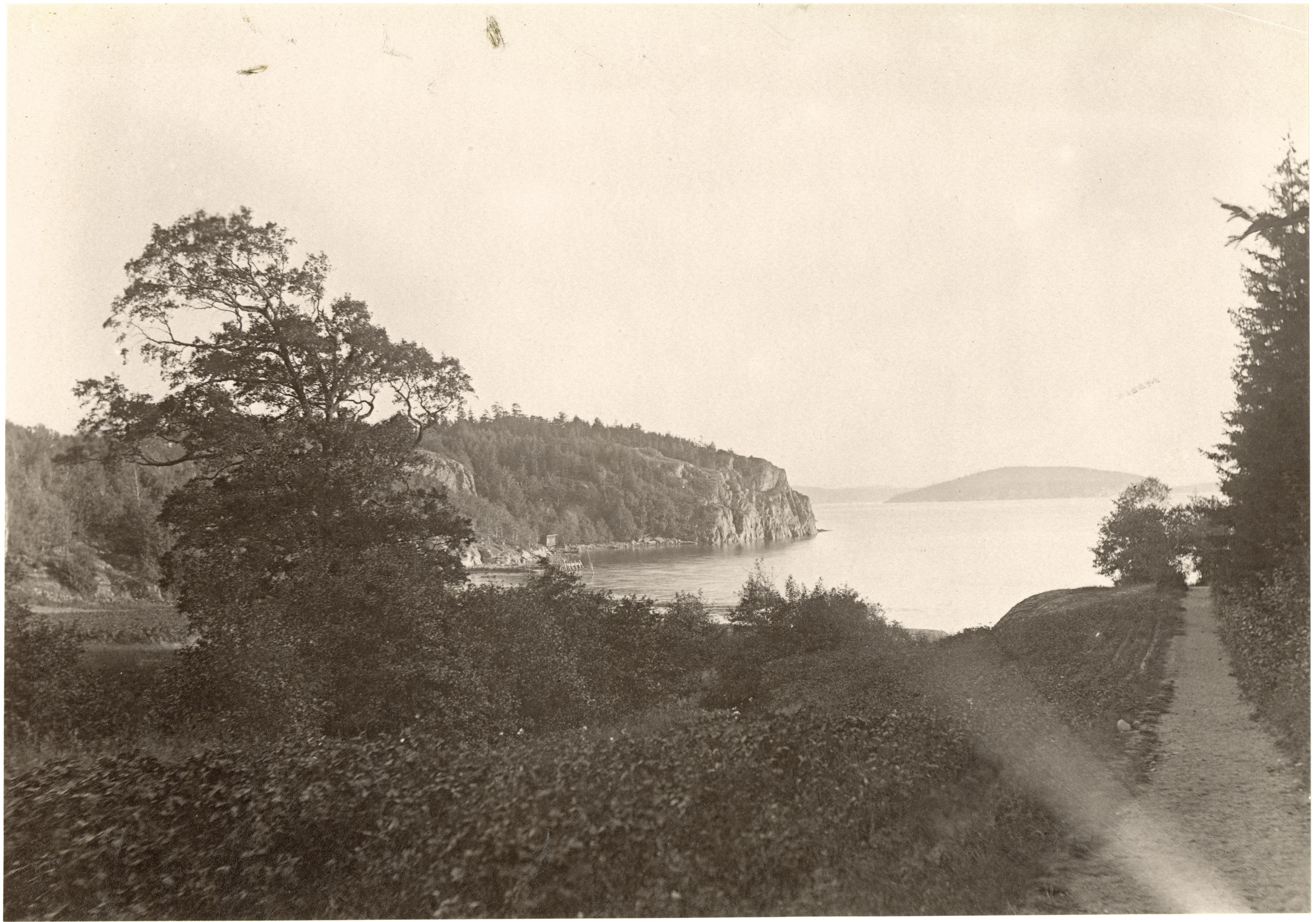 Vid Torreby/Apelvik. Bilden tagen från vägen, mot viken. Ön i bakgrunden är Stora Bornö i Färlevfjorden, en bifjord till Gullmarn (Gullmarsfjorden).