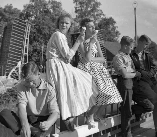 Titel: Ungdomar vid slussen i Forsvik.