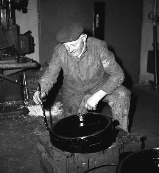 Titel: Arbete i verkstaden på Forsviks bruk. Blackning av gjutgods.