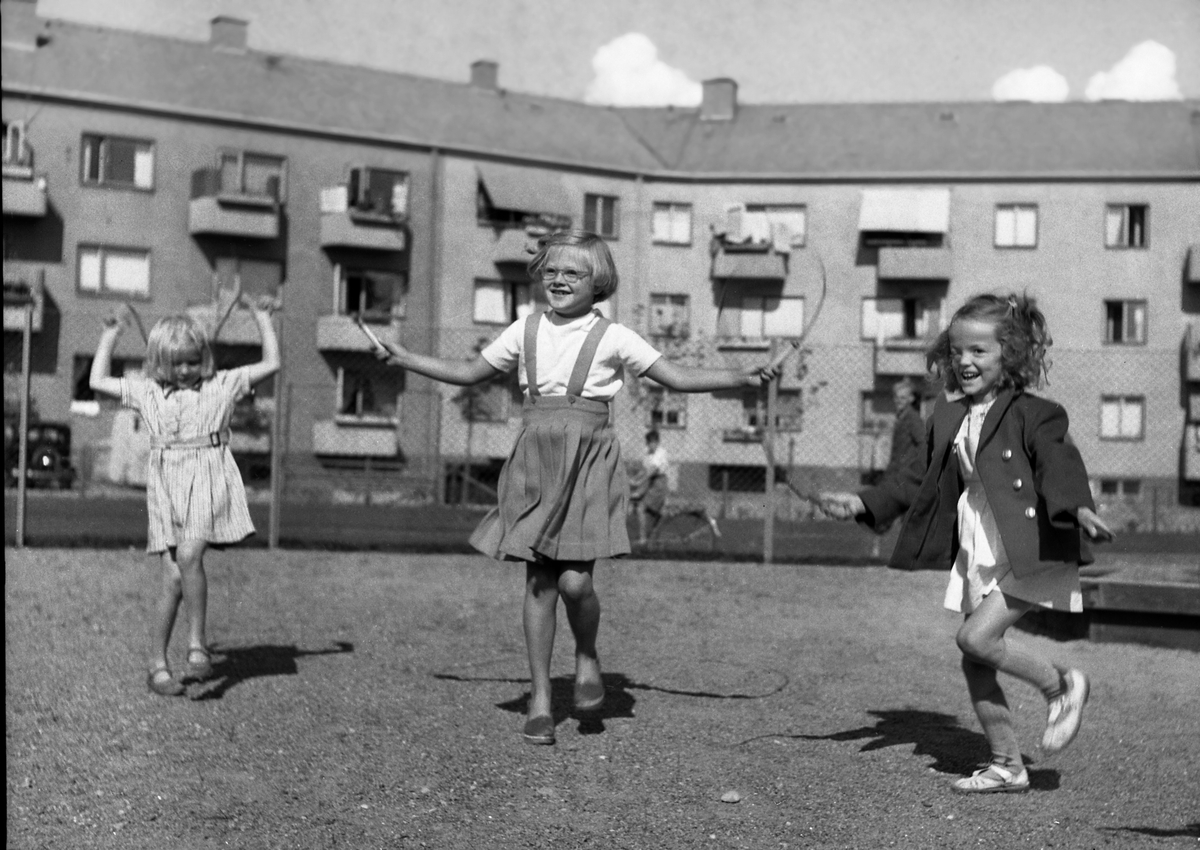 Titel: Barnträdgårdar i Linköping. I september år 1957 öppnade Åbylunds barnträdgård. Ansvarig var Linköpings allmänna barnträdgårdar. Ursprungligen var de föreningsdrivna, men det ändrades den 1 januari 1948. Barnträdgårdarna bytte senare namn till daghem och lekskola. Efter barnstugeutredningen (1968) bytte daghemmen namn till det nuvarande namnet, förskola. Barn. Lekis. Barnverksamhet. Pedagogik. ... ... ... 385 bilder om Linköping på 1950-talet från tidningen Östgötens arkiv. Framtidstro och optimism är ord som sammanfattar Linköping på femtiotalet. Årtiondet innebar satsningar för att förbättra linköpingsbornas livsvillkor. Bostadsfrågan och trafiklösningarna dominerade den lokalpolitiska agendan. Bilderna digitaliserades år 2013.