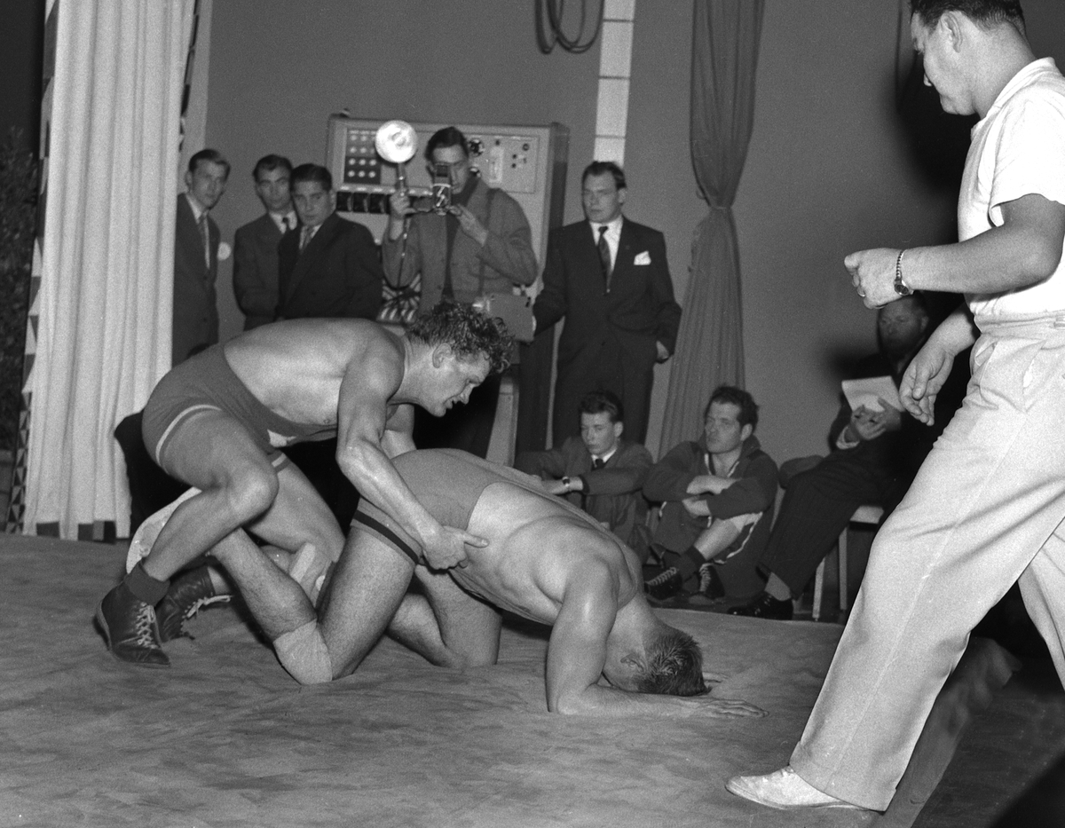 Brottningsmatch i Linköping på Folkets hus.