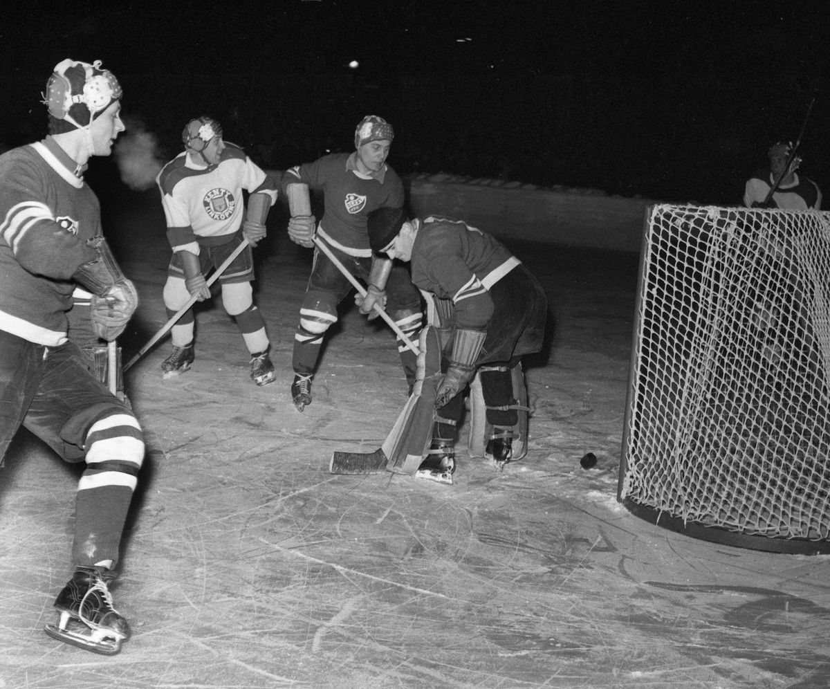 Ishockeymatch 1959 mellan Derby och Kenty. Hockey. Vintersport.