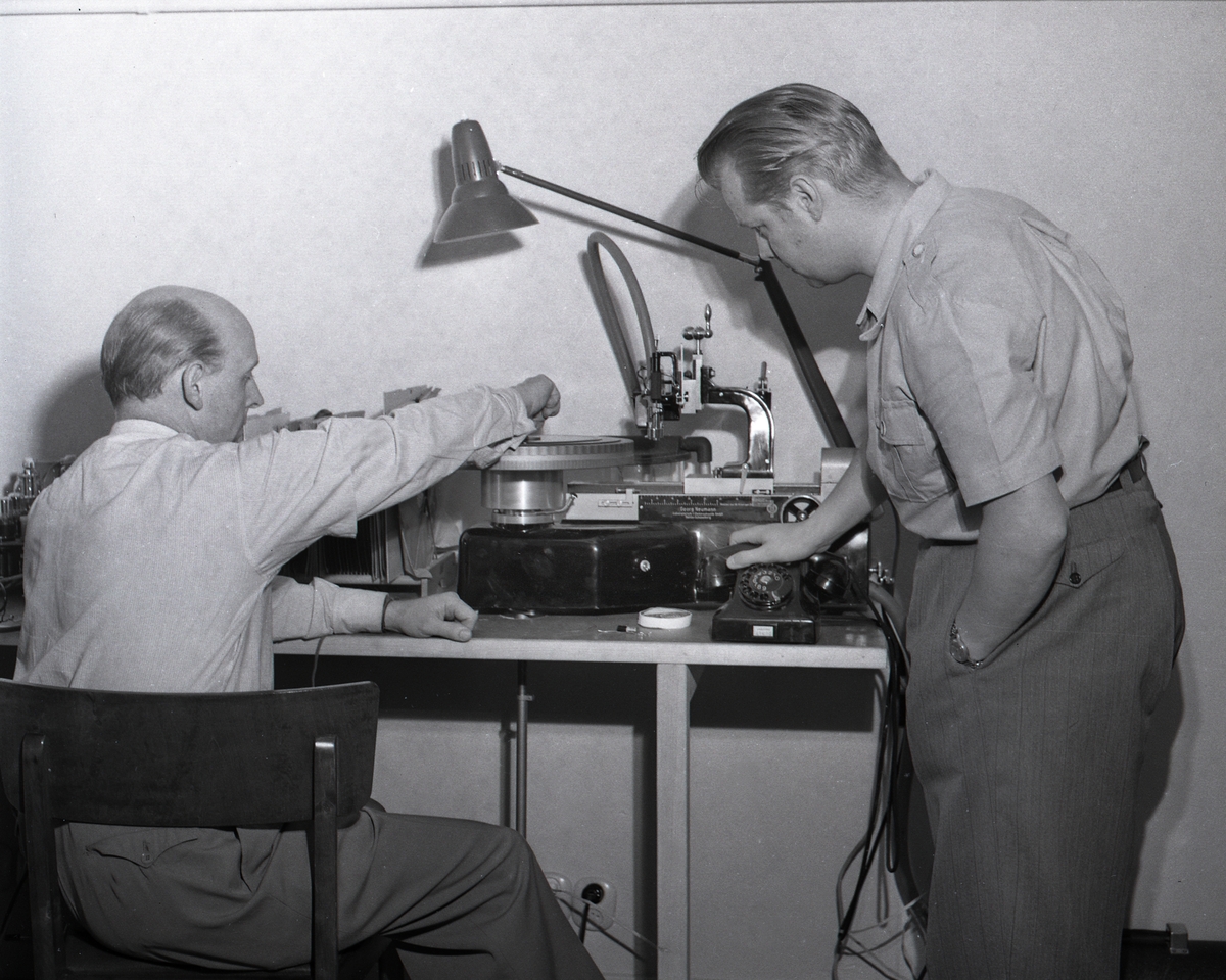 Inspelning i studio i Linköping. Studion var edn enda söder om Stockholm och svar ladsortens modernaste.