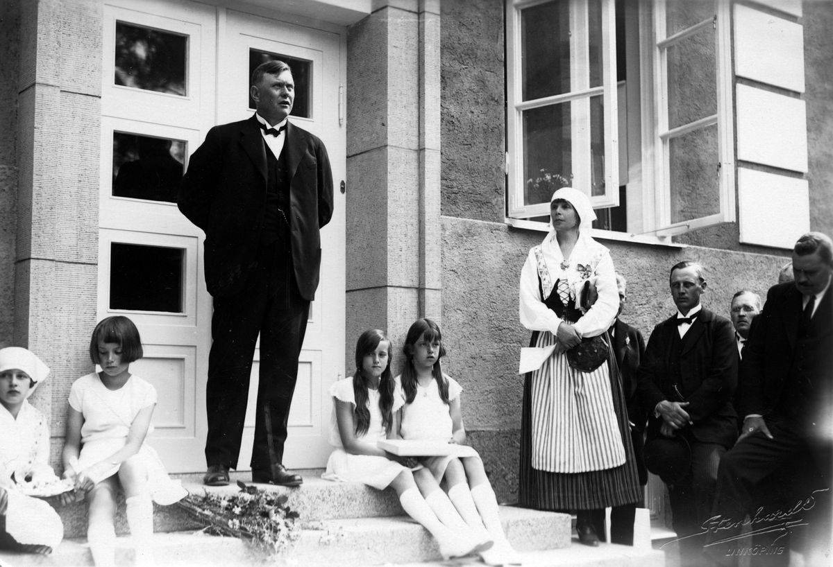 Invigningstal den 20/6 1931. Hugo ? talar å Lasarettets vägnar. Bilder från Barnsjukhusets invigning i Linköping. Invigningen av Blåklintshemmet år 1931. Bilder från Blåklintshemmets invigning år 1931.
