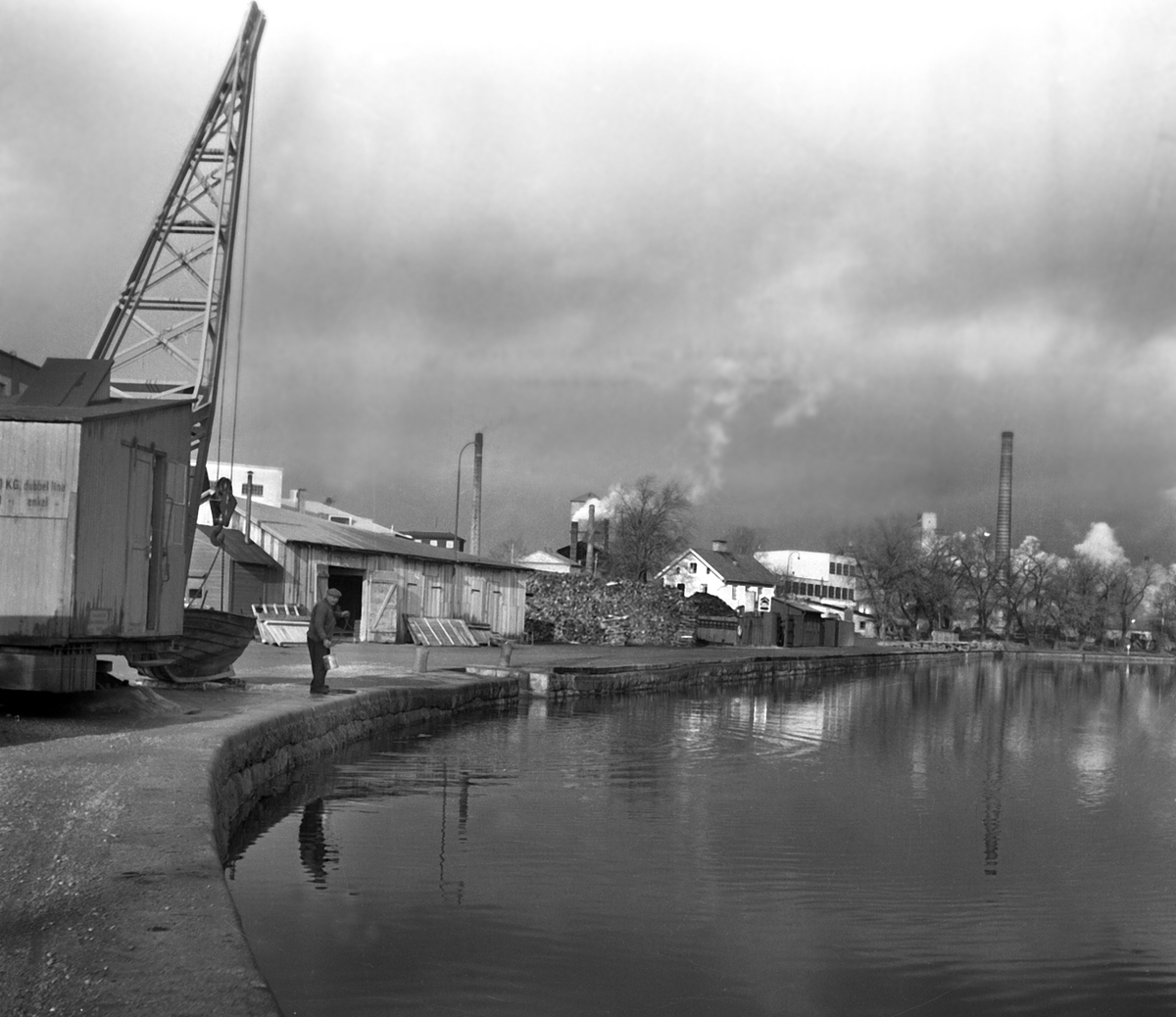 Linköpings hamn sedd från nordväst i jamnhöjd med järnvägsstationen. Denna del av hamnen togs i bruk hösten 1867 och kallades då "Nya hamnen". Den gamla hamnen låg vid Nykvarn.