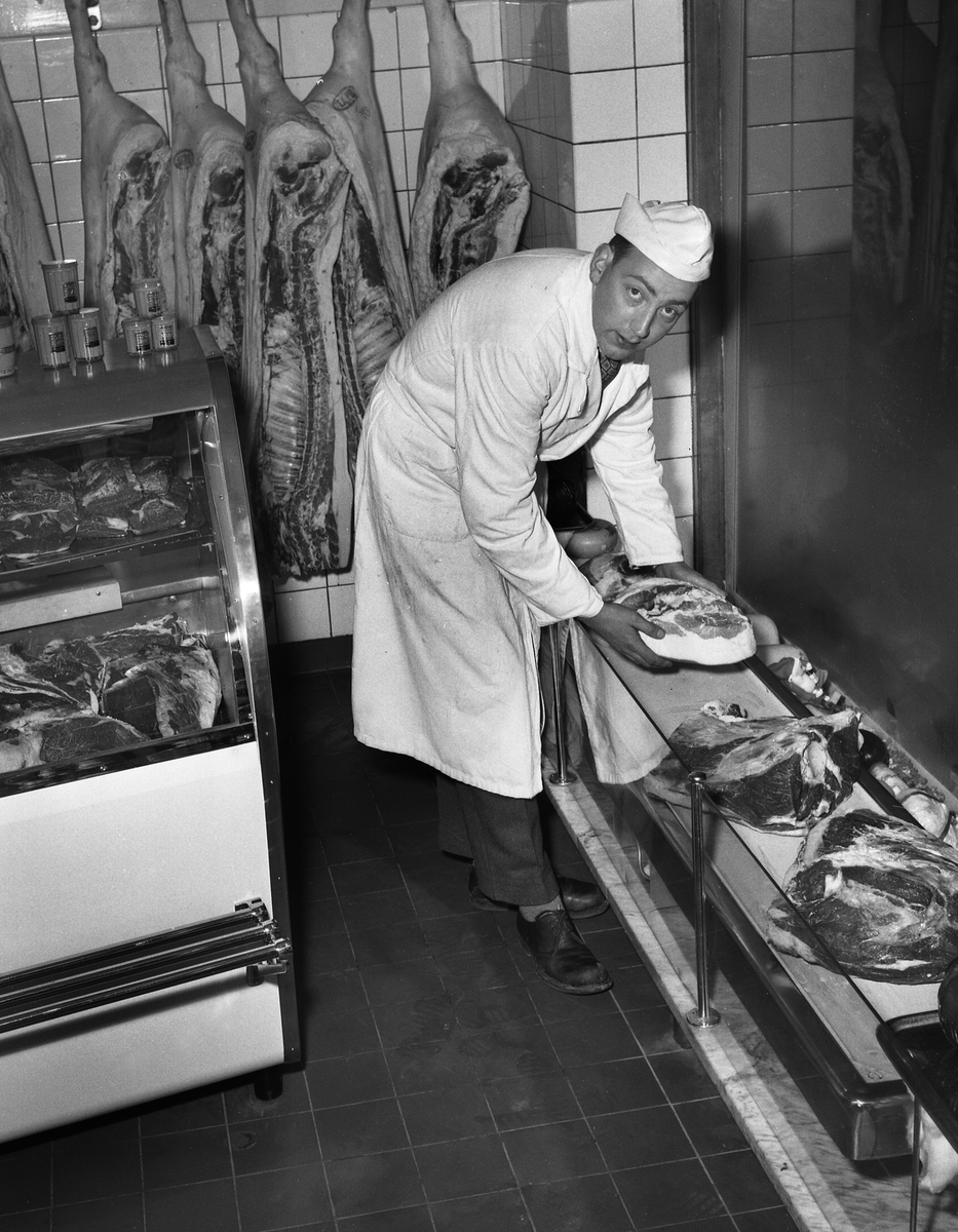 Charkuteriet i Tannefors på Nya Tanneforsvägen 67 hade i mars 1954 ersatt kyldisken med kylplattor. Chark. Kött. Livsmedel.