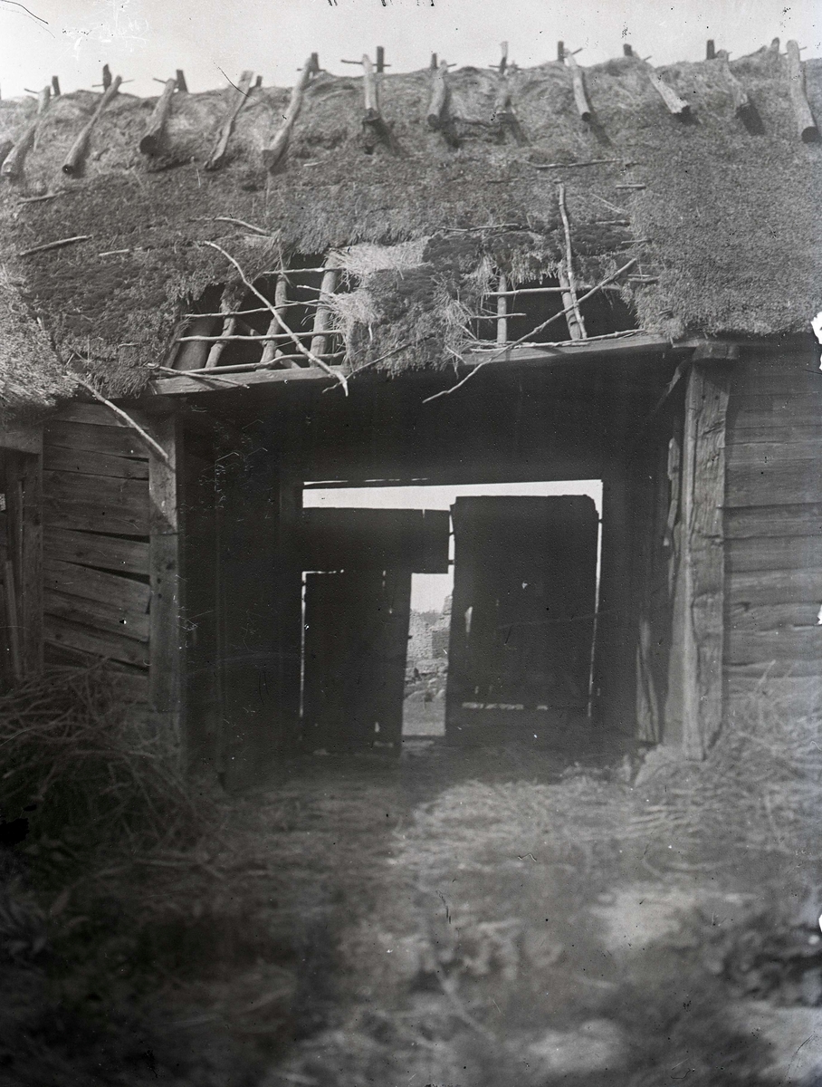 En portlider i Lenstad. Taket är av stråtak och har takryttare.