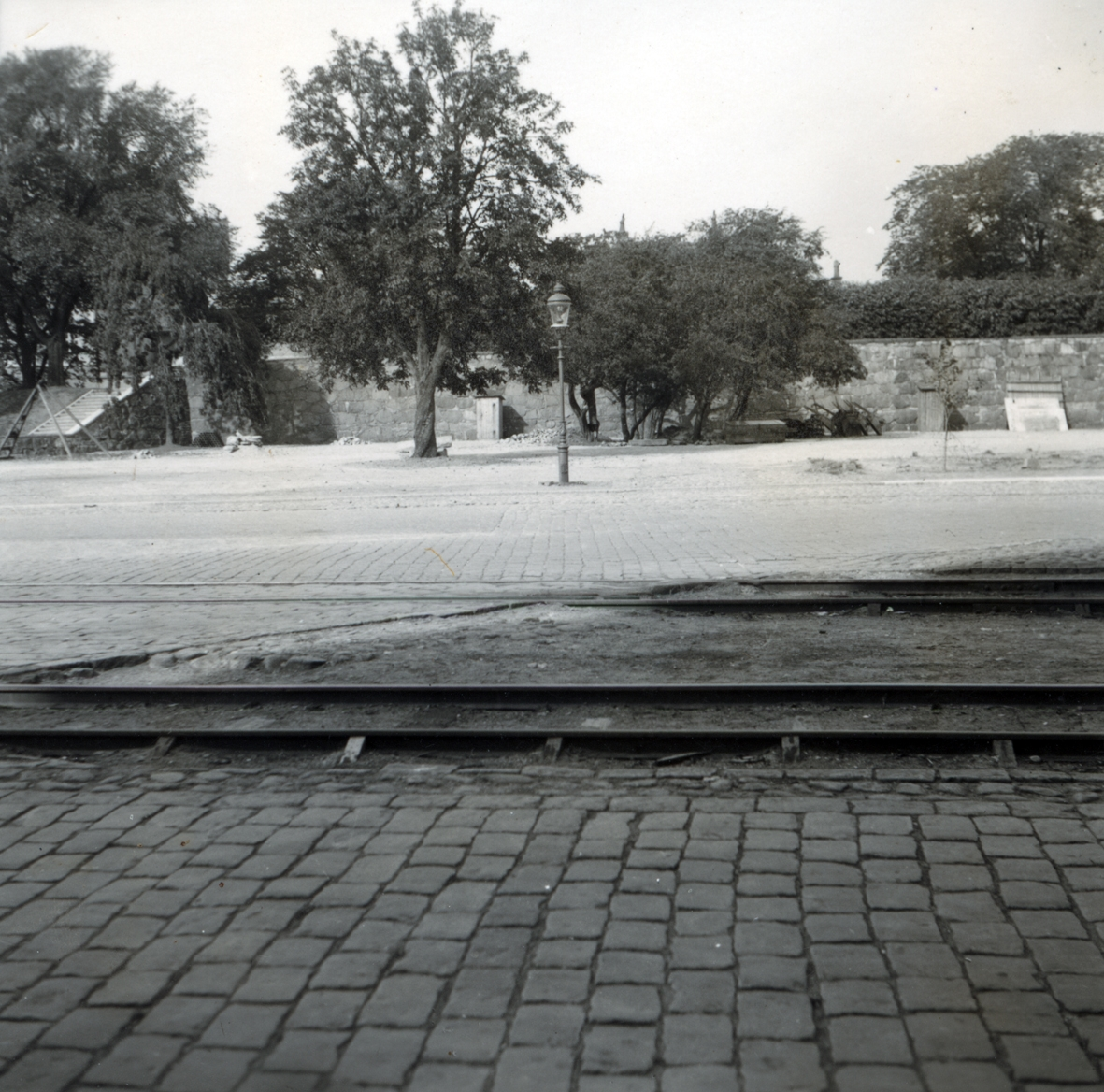 Gata och järnvägsräls på Kvarnholmen vid bastionen Johannes Rex.