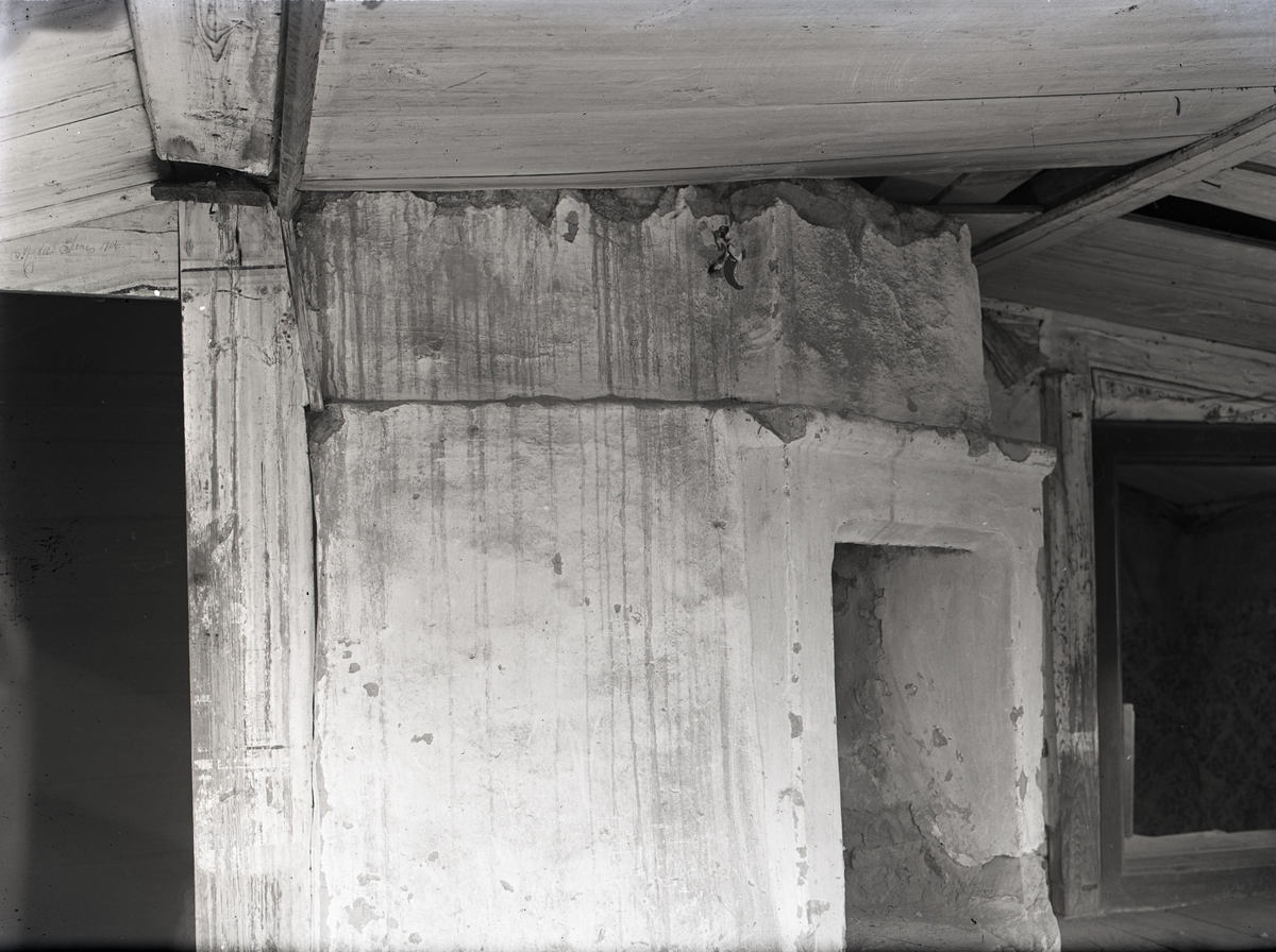 Hembygdsgård, interiör med öppen spis.
