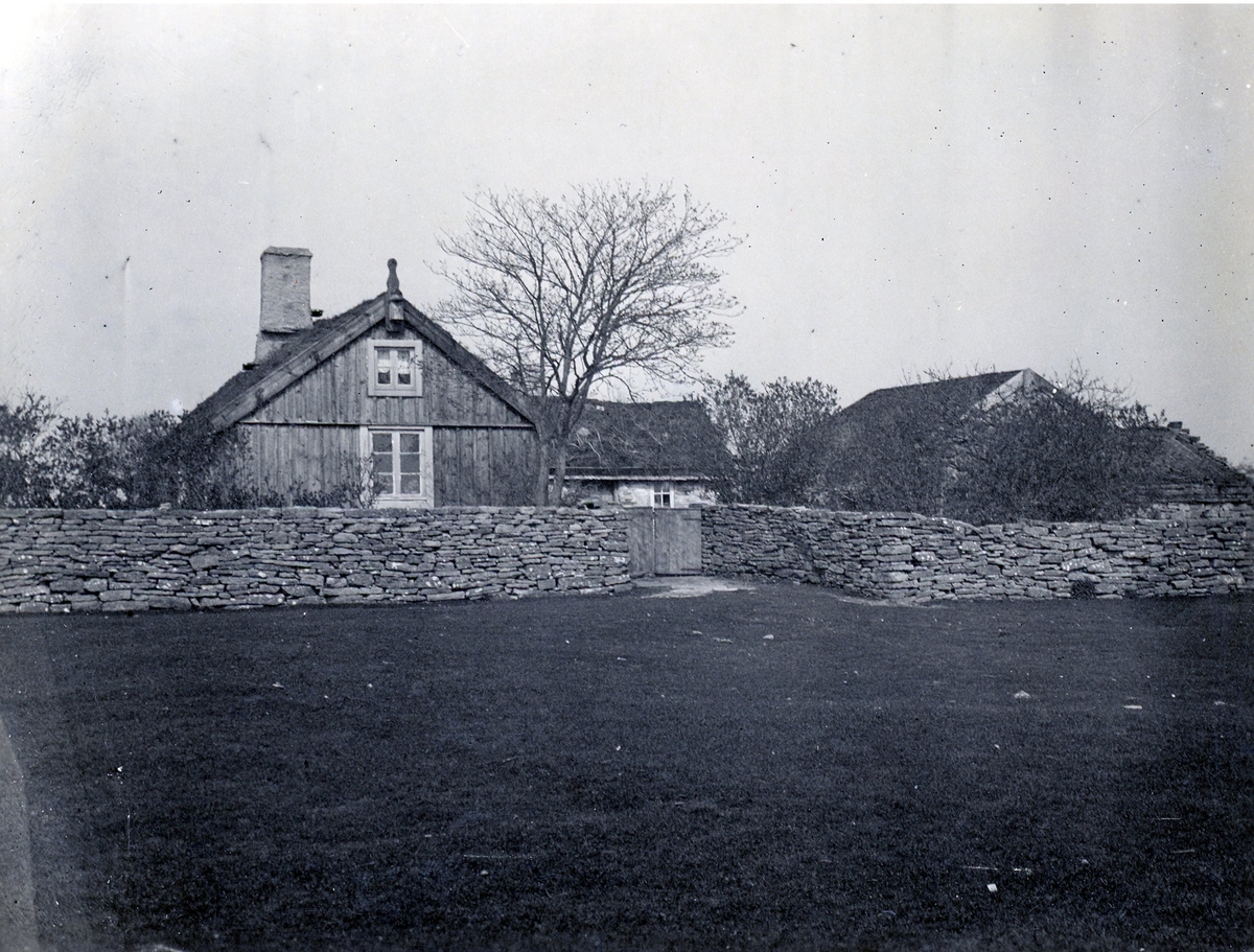 En ryggåsstuga bakom stenmur i Lunda på Öland.