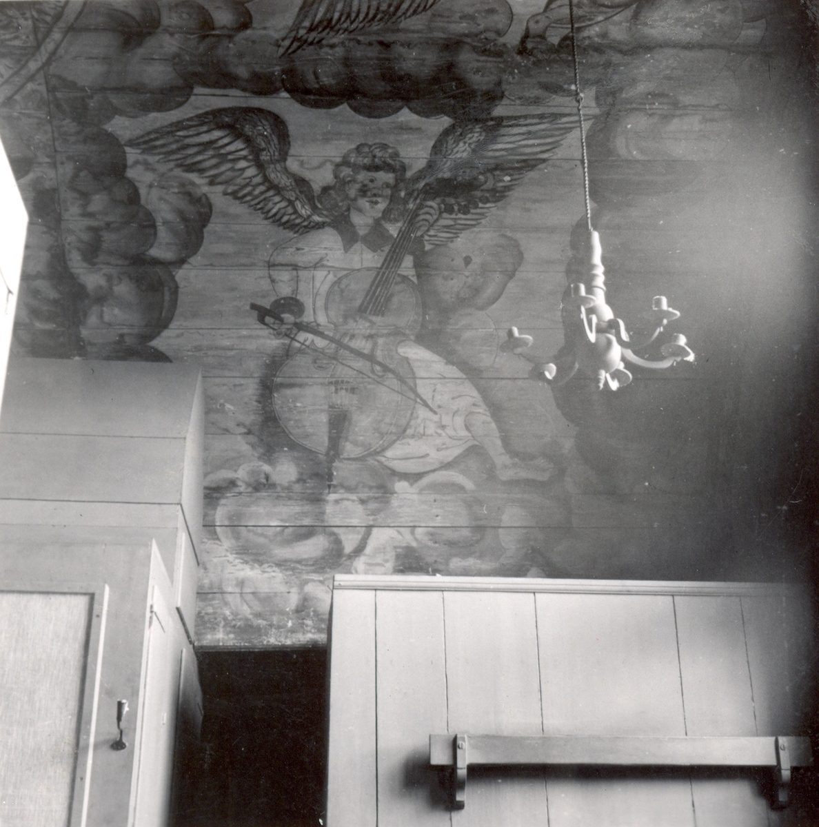 En takmålning i Djursdala kyrka. Tak över orgelläktaren.