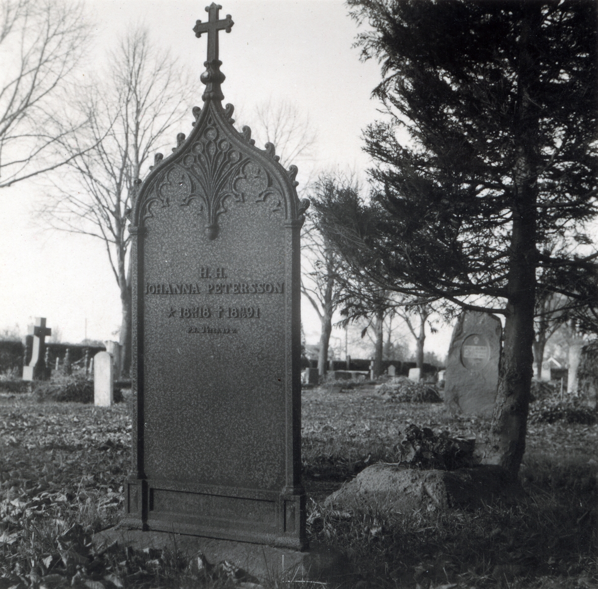 Inskription på gravvården: "H. H. Johanna Petersson * 15/11 1818 +11/10 1891 Ps ... [?]"