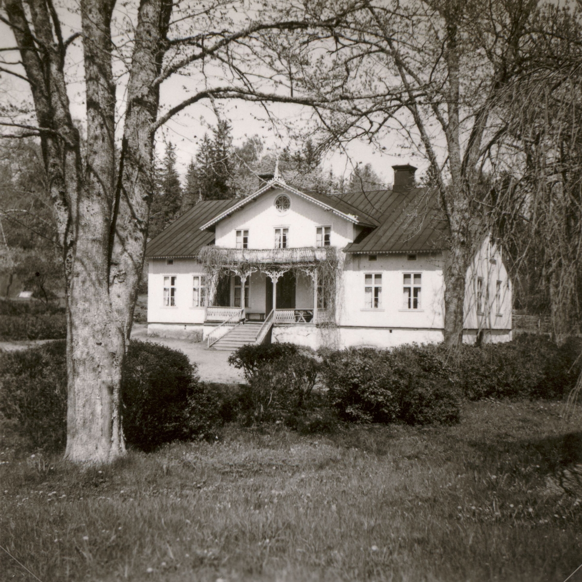 En mangårdsbyggnad med frontespis och veranda i Bjurvik.