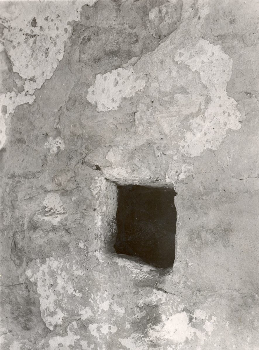 Ett hål vid korabsidens högra sida. I Arby kyrka.