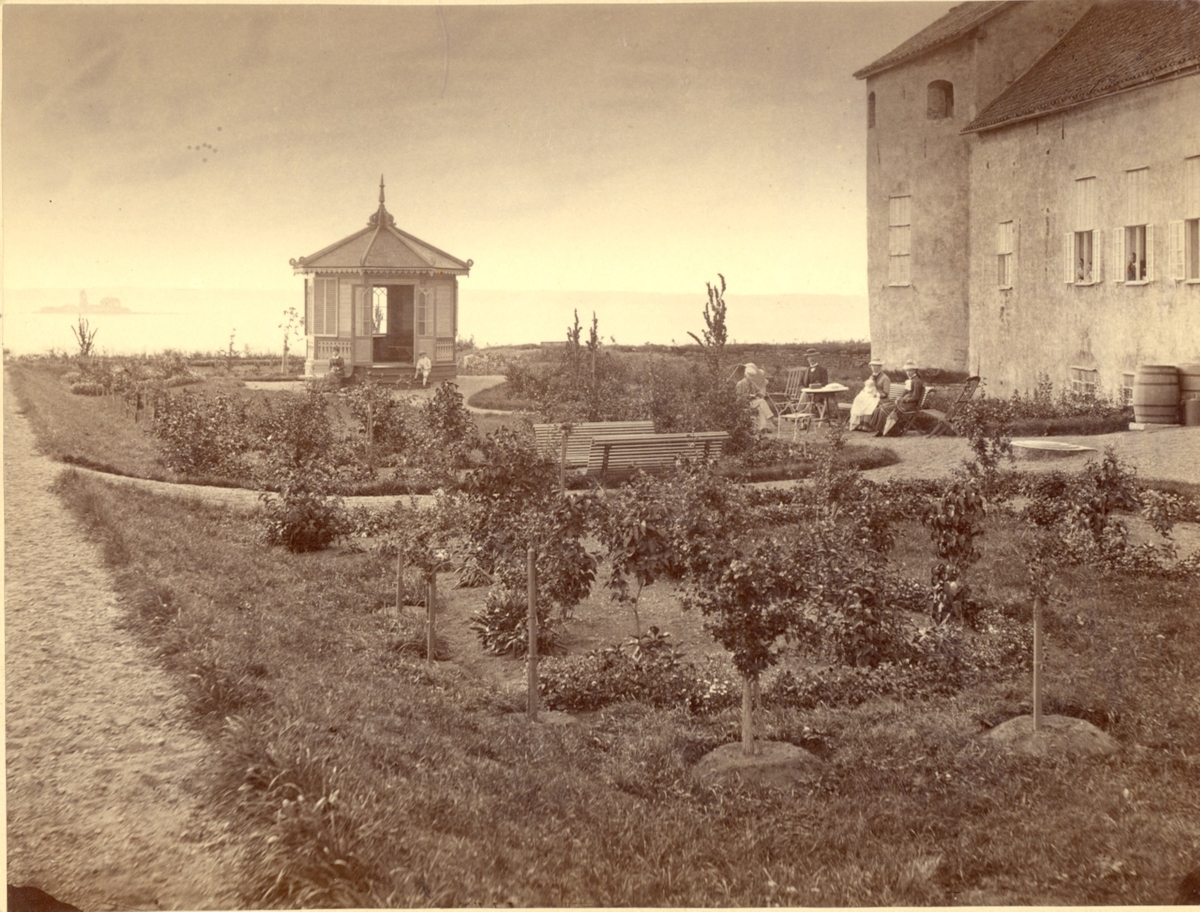 Norra vallen. Trädgård på slottsvallen med landshövding Edelstam med familj.