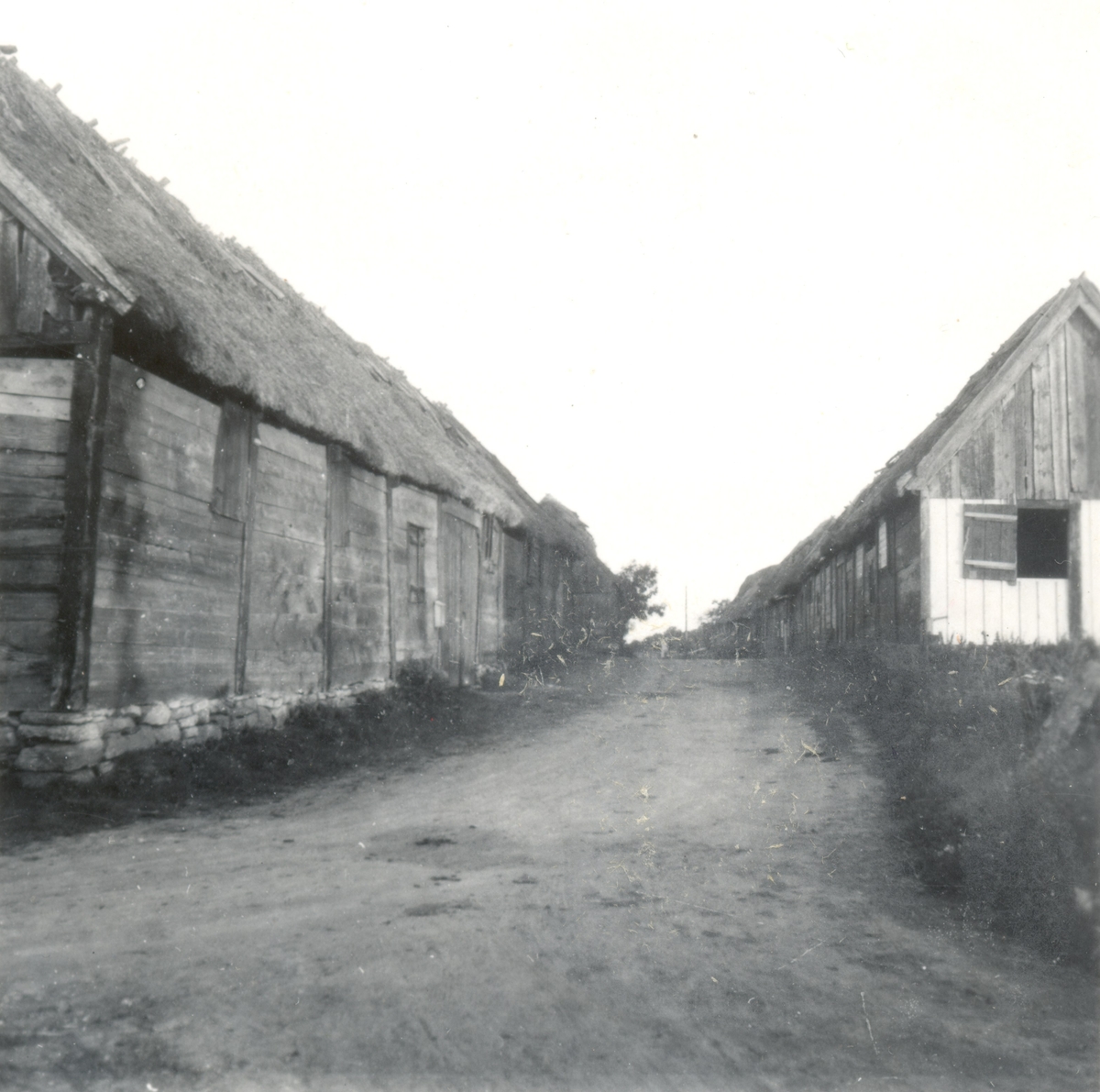 En radby med stråtak och takryttare i Himmelsberga.