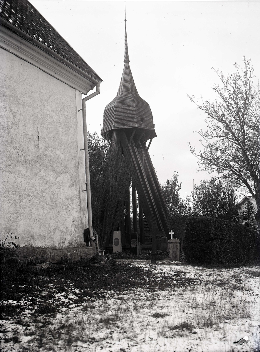 En klockstapel vid en kyrka.