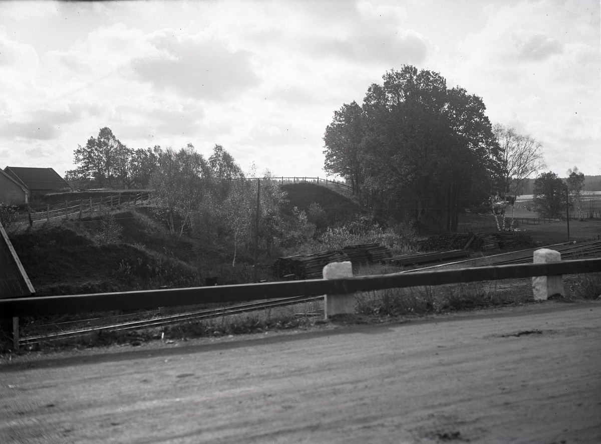 Vy från vägen mot järnvägsspåren på stationsområdet.